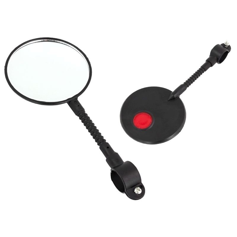 Lusterko rowerowe wsteczne. Uniwersalne, zarówno na lewą i prawą stronę kierownicy. Wzmocnione z myślą o cięższych warunkach jazdy. Montowane w kierownicę.